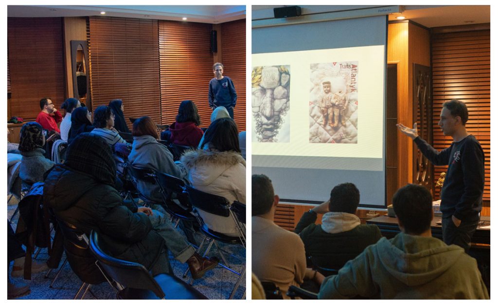 بخش ابتدایی از رویداد سینا افشار در مدرسه اینورس به مرور تاریخ و مکاتب طراحی پوستر اختصاص داشت. از جریانهای فرانسه، لهستان و ژاپن گرفته تا سیر تحول پوستر از ابزار اطلاعرسانی به یک بیانیهی هنری-فرهنگی. افشار نشون داد که هر مکتب، پاسخ مشخصی به مسئلهی «مخاطب» داده و طراح امروز، بدون شناخت این پاسخها، ناچار به تکرار سطحی فرمهاست.