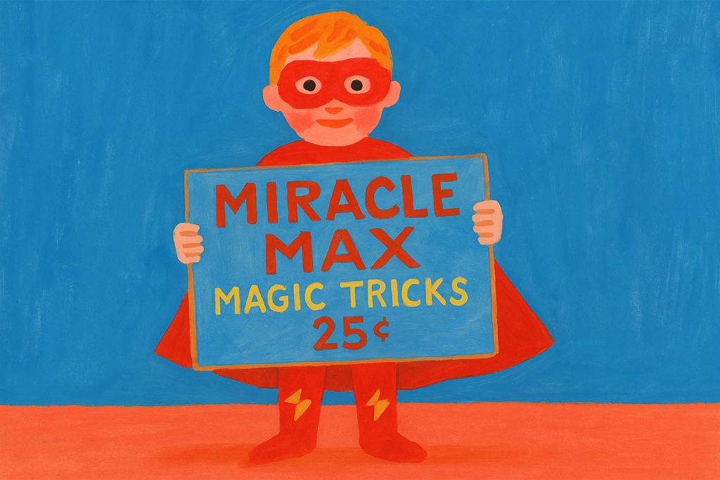 بچهها، خیس عرق و سرشار از شور، آخرین تعظیمشان را جلوی تابلوی چوبی انجام دادند (تابلو را به سمت «معجزهگر مکس – طبابت مشکوک، ۲۵ سنت» برگردانده بودیم) و سپس دویدند، لباسهایشان را درآوردند، کلاهها را به هوا انداختند.