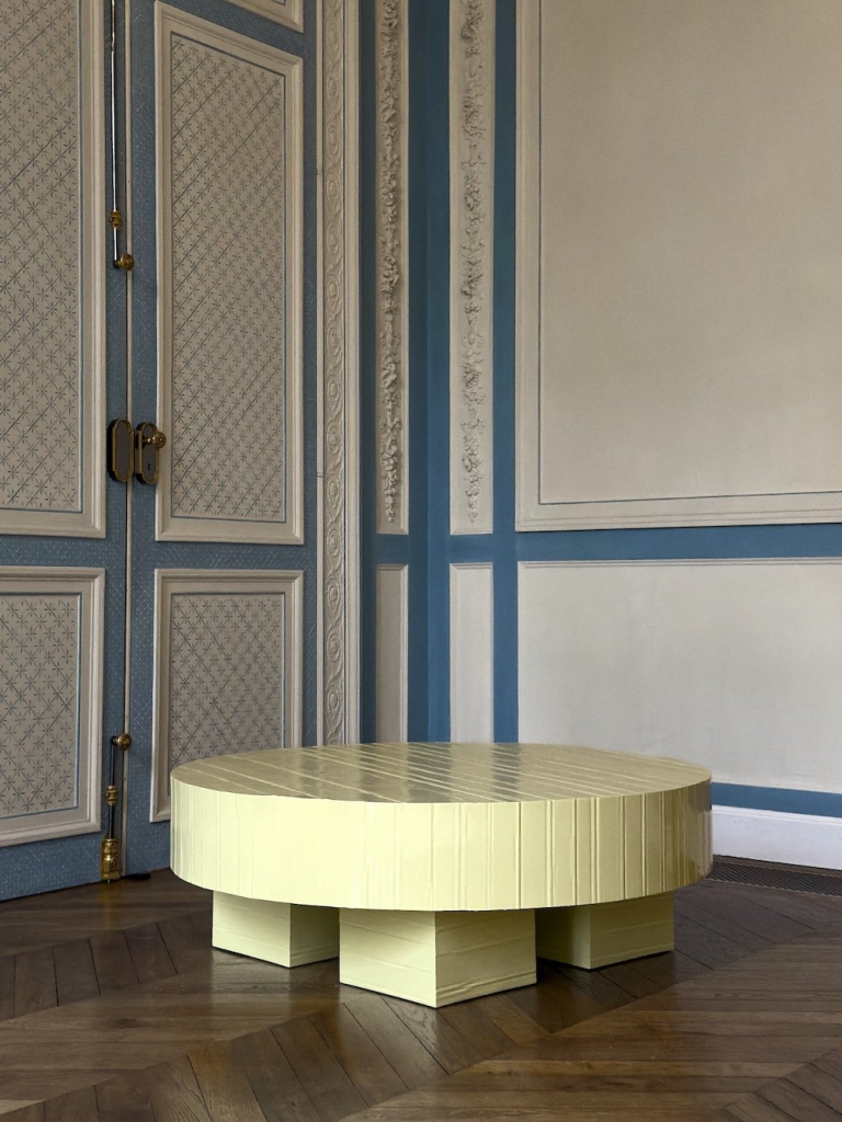 وقتی بستهبندی کره رو باز میکنیم، بافتی نرم و فشرده روی سطح اون میمونه. همین بافتها، تخیل کامپاردو رو برای ساخت قالب برانگیختن. اگرچه میز ممکنه در نگاه اول شبیه به یک دسر ژلهای یا حتی تکهای کره فرانسوی بهنظر برسه، Primack (کیوریتور نمایشگاه) با شوخی اون رو به «خط تولید مبلمان Jolly Rancher» تشبیه میکنه.