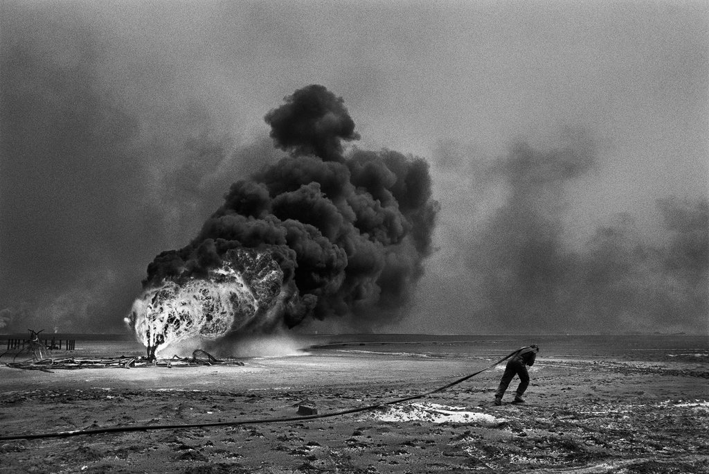 در بحبوحهٔ پایان جنگ خلیج فارس، چاههای نفتی آتش گرفته بودن. سالگادو داخل شعله و دود، کارگران رو مثل ارواح تاریک عکاسی کرد. این مجموعه کوتاه بود ولی بهخاطر کنتراست شدید دود سیاه و شن سفید، یکی از نمادینترین عکسهای جنگی شد.